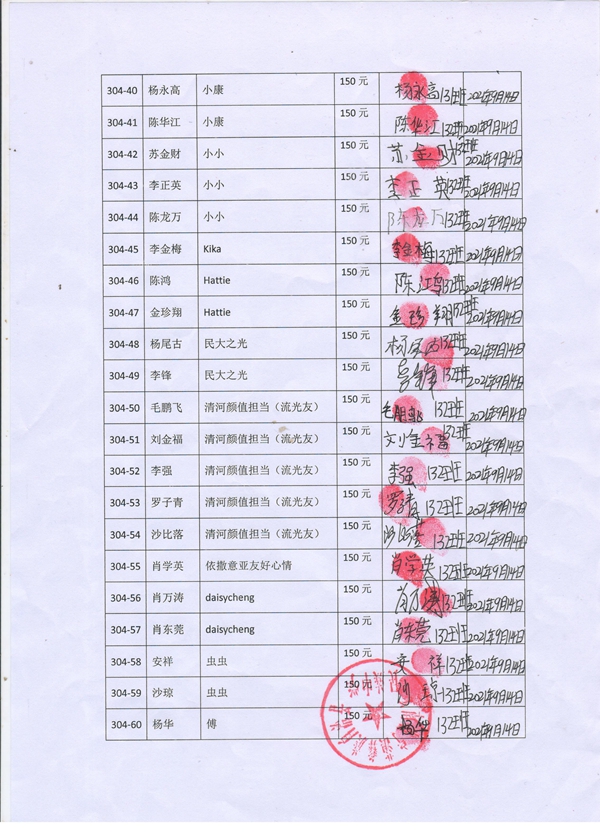第304批宁蒗民族中学初中部(2021年3月-2021年8月)受助学生签字确认单