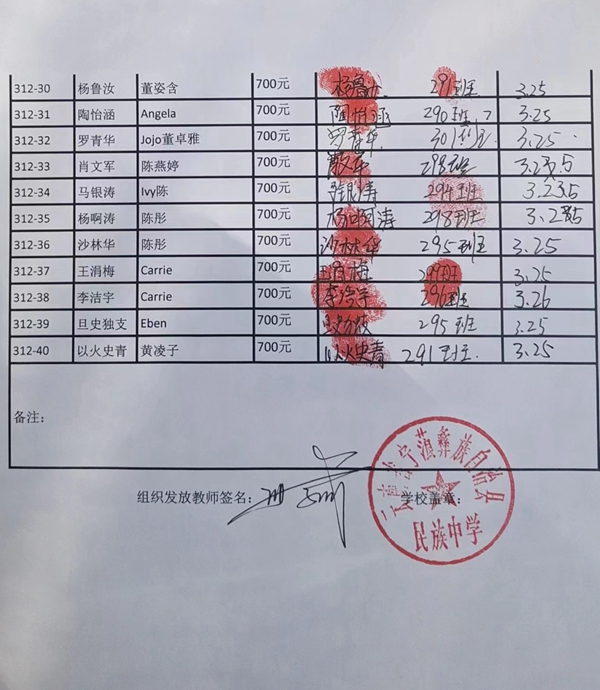宁蒗民中,一起发放资助款,学生领款照片