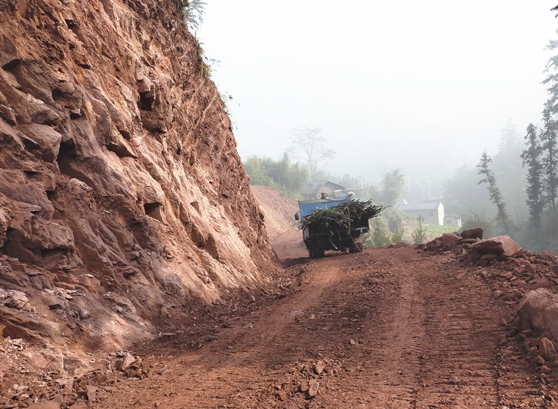 (2)随后村民自筹或向政府申请石头子,铺成石子路,小雨也能通车。