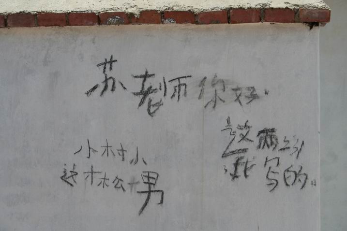 走近学校,发现校门锁着。向村民了解,才知道这些天村委会换届选举,老师没有在。老浦,崔校长,张老师在围墙外面转,进不去可怎么办呢?我趁机派了几张照片。