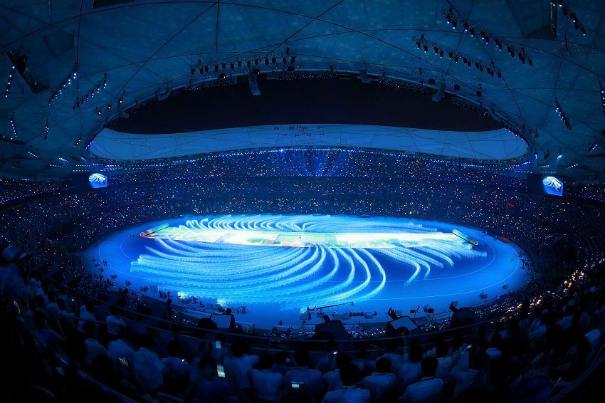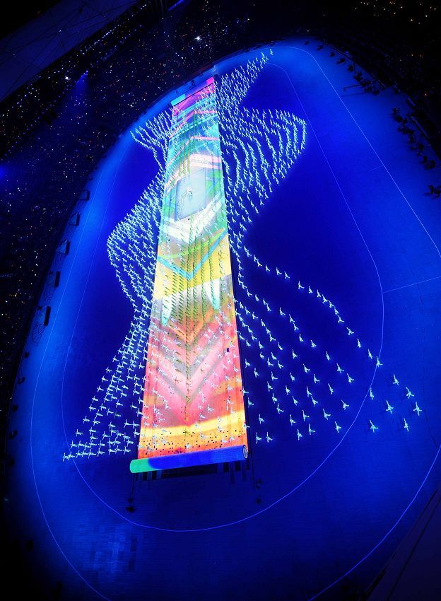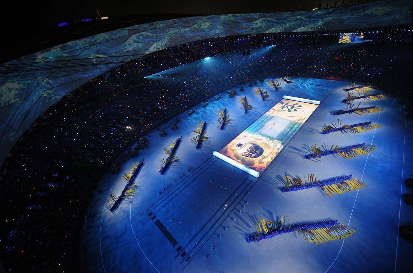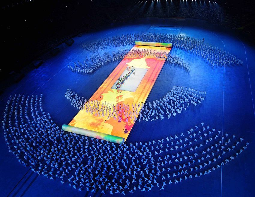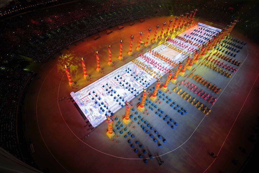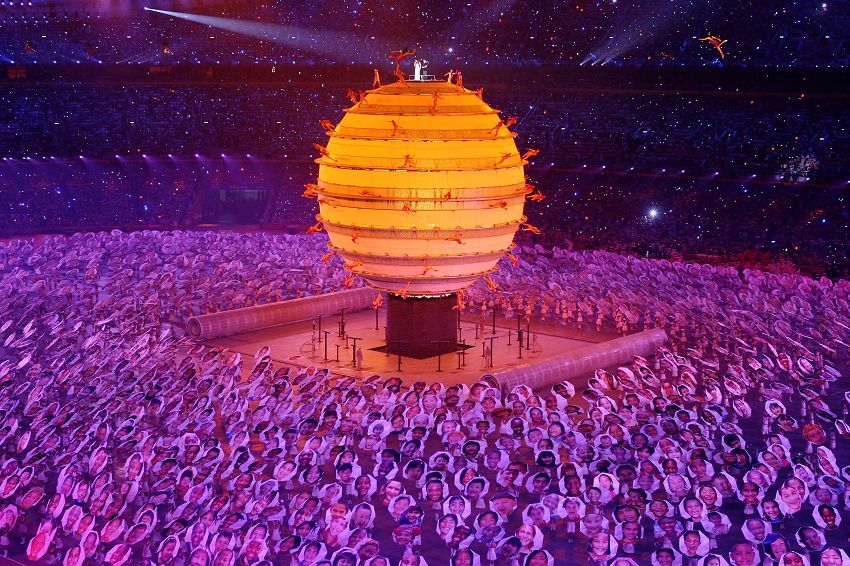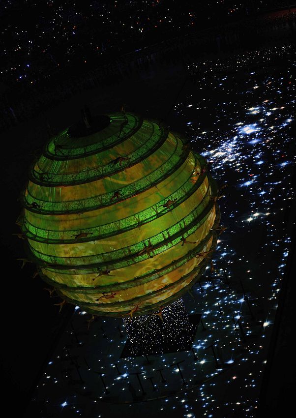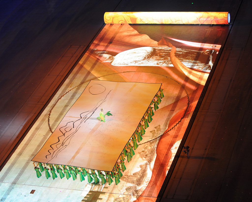 画卷刚展开时的文艺表演,用各种灯光取得的效果,可惜电视导播没有给远景镜头..当时看排演的时候就特震撼..