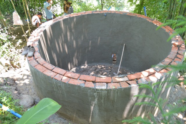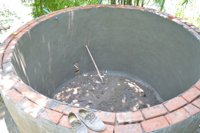 从这根管子引水到学校,下面的洞准备接一根管子出去,用于以后清洗水池.