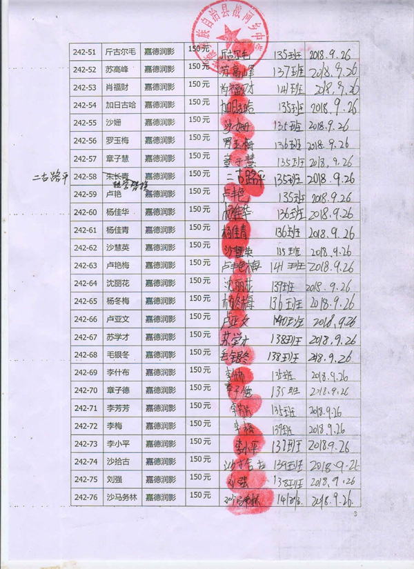 242-68杨学青;242-75沙学青;242-78李泽;242-82李万福;242-87杨鹏;242-88忍古;242-95毛泥尾;