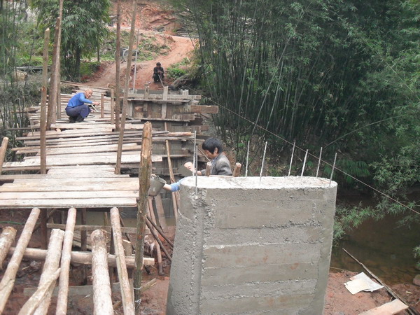 高洞子和水井湾现已完工,但修好的桥面距河面太高,为人们过桥的安全考虑,后又加修了护栏,以下是两座桥修护栏的一些照片: