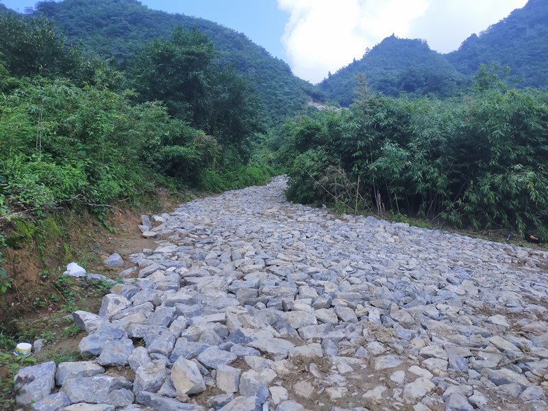 以下是第二步,村里自筹或向政府申请石头子,铺成石子路。