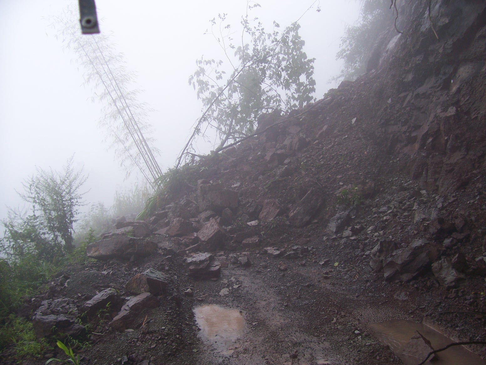 多处塌方滑坡已经把新修的公路阻断,幸好雨季前个新建村校都已经把建材运到现场,但施工还是受到影响,几个稍大的村校,竣工日期可能要延长一些天了,但学生开学上课的事情已经安排好……