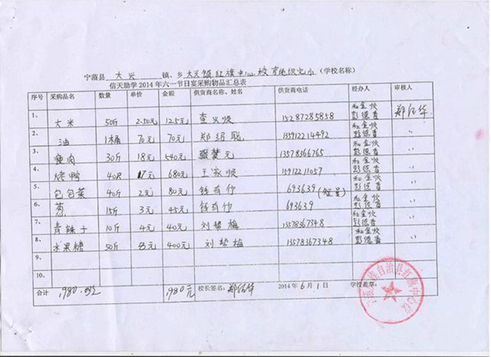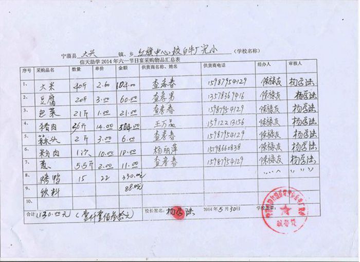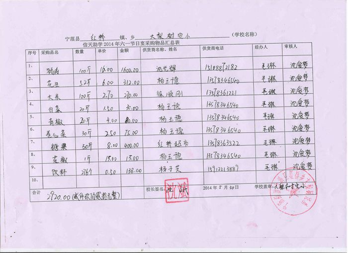 红旗中心校,白牛厂完小2014年六一节日宴采购物品汇总表.jpg
