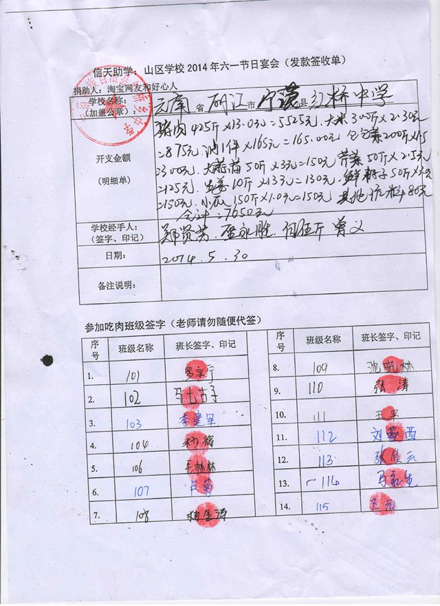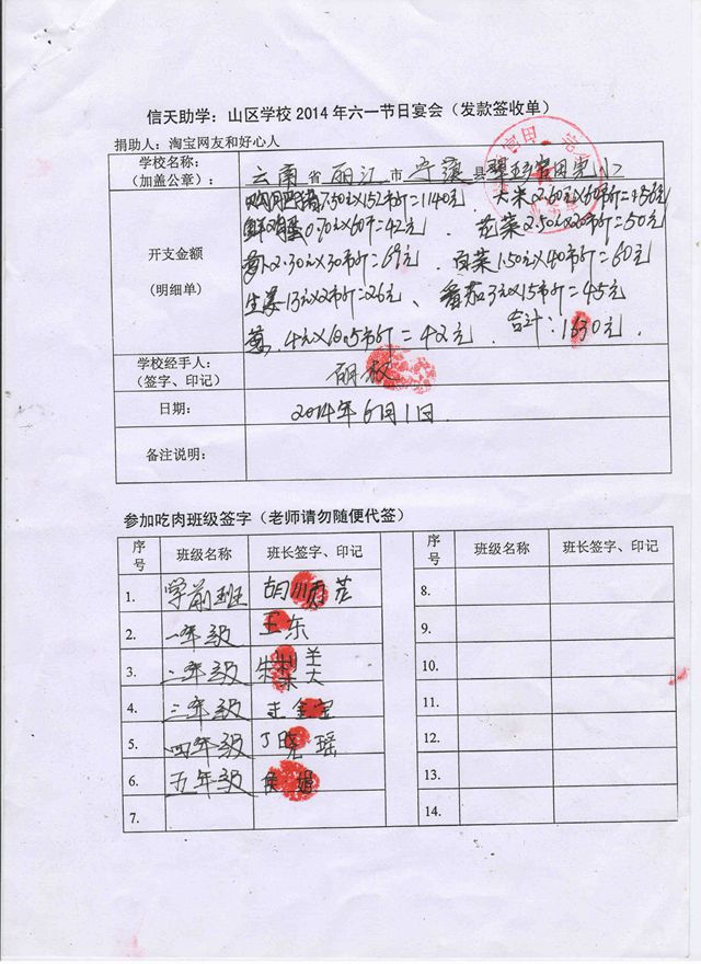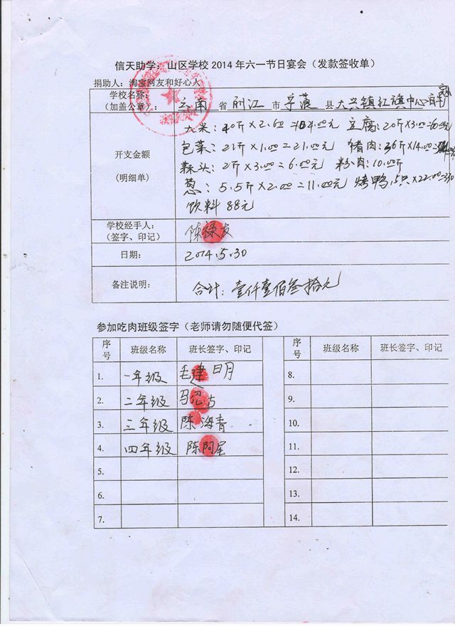 红旗中心校,官地坝完小2014年六一节日宴发款签收单.jpg