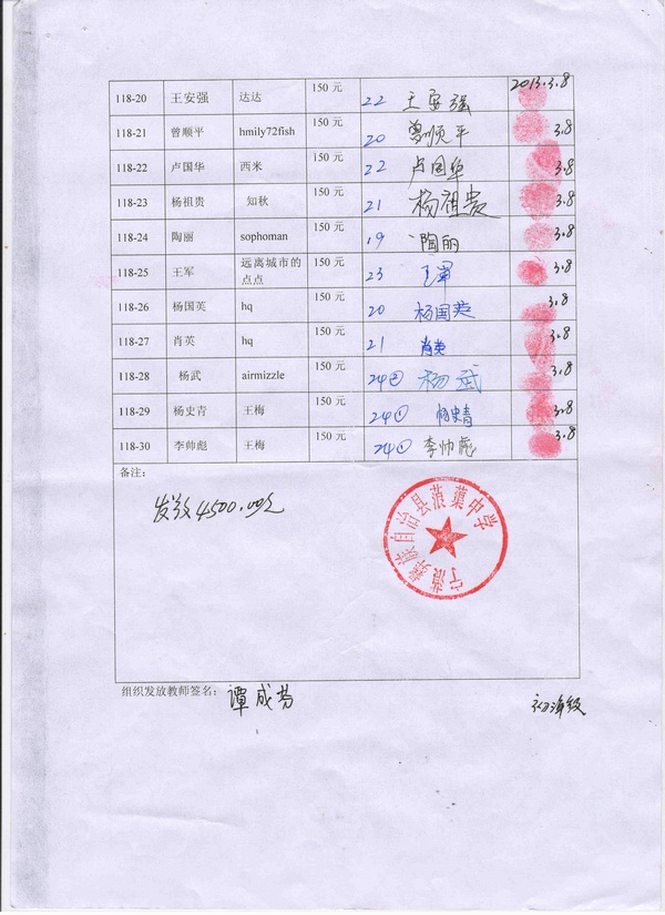 学生领款照片(与103批、104批、116批一起发放拍照):