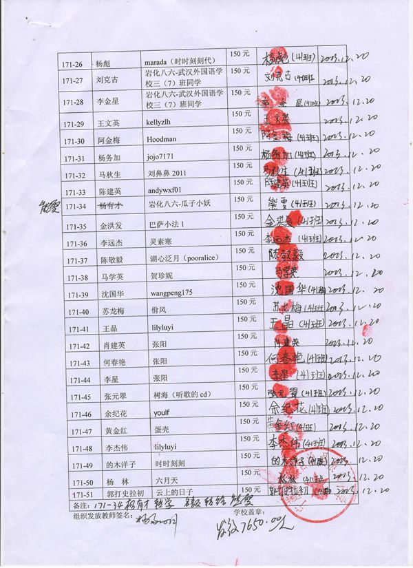 » 第171批受助学生名单(蒗渠中学51名,散捐完毕)