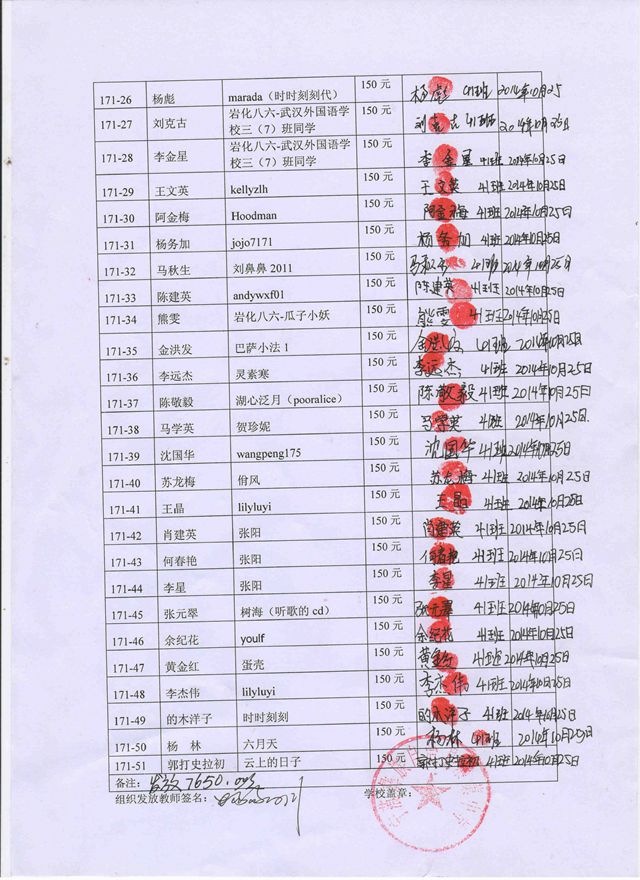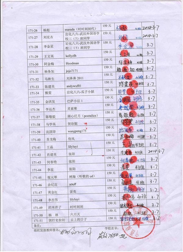 第171批l蒗渠中学(2014年3月-2014年7月)受助学生签字确认单