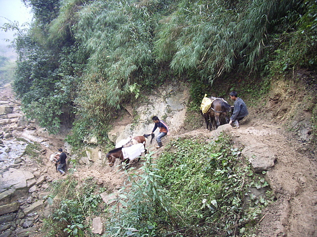 这里的赶马人都是彝族,他们是很爱自己的马匹的,他们把马匹看做是自己的伙伴,过去常看到平原上驾马车的人总抱着个大鞭子不同,在这里,没有见到过赶马人打自己的马,也没有看到他们的手中有鞭子…