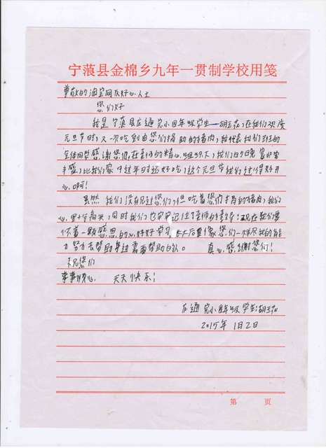 2015年元旦节日宴学生感谢信(金棉乡,红星完小).jpg