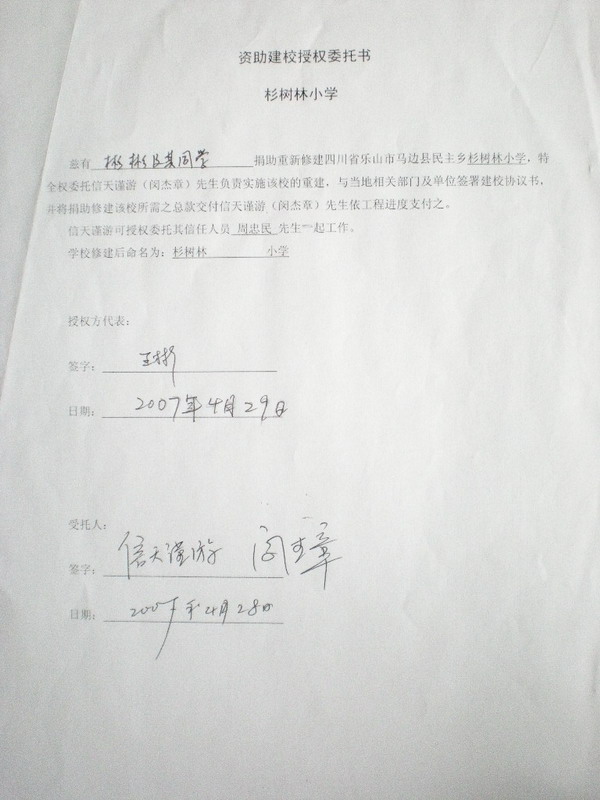 二、《资助建校授权委托书》