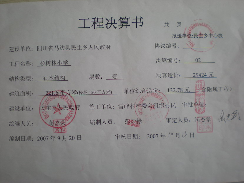 第65所:四川省马边县民主乡杉树林小学修建总结