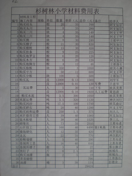杉树林小学改建预算单