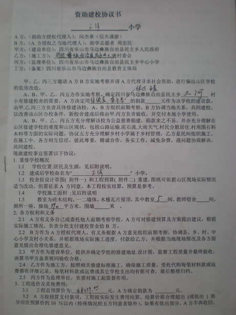 三、《资助建校协议书》及附件《图纸》和《工程预算单 》