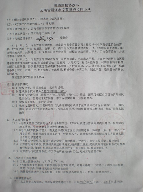 三、《资助建校协议书》及附件《图纸》和《工程预算单 》