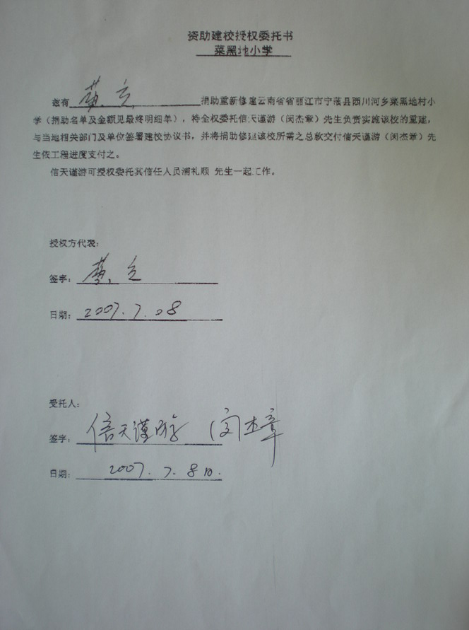 二、《资助建校授权委托书》