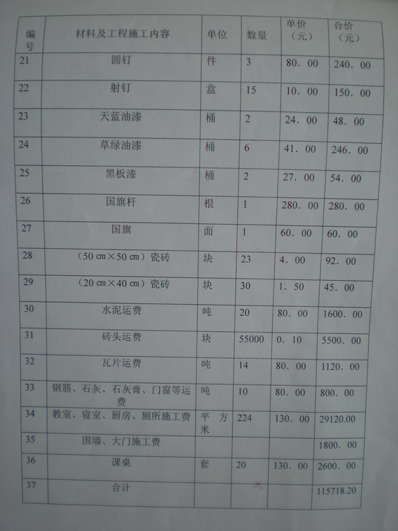 1、由于修建各学校位于不同的乡村,交通运输及当地原材均有不同。
