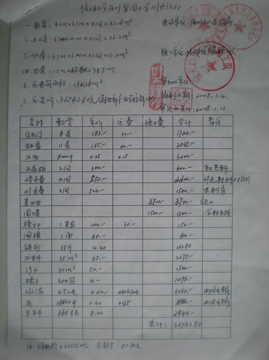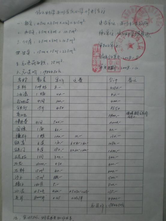 房屋规格:①教室:4.2米*3.7米*4间;②宿舍:3.7米*3米*3间;③门:大门2米*0.8米*1道,小门2米*0.75米*7道;④窗:1.2米*1米*11道。