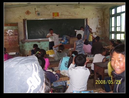 班上分发的方式是,让班委举着衣物,学生谁要就给谁.最后,把多余的又收集在一起,运到大水沟,金子沟等凉山学校.
