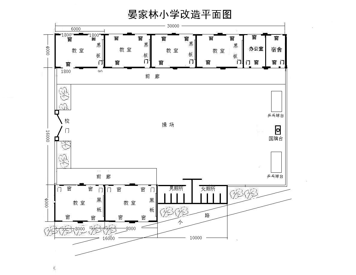 平面图(第1版),第2版为6间教室,2间老师办公室和宿舍