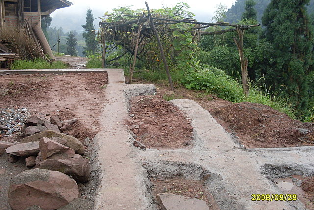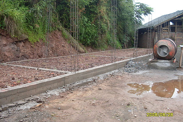 汶川大地震后,原方案改为抗震的砖混、现浇屋顶、上下圈梁、构造柱结构,一层平房。