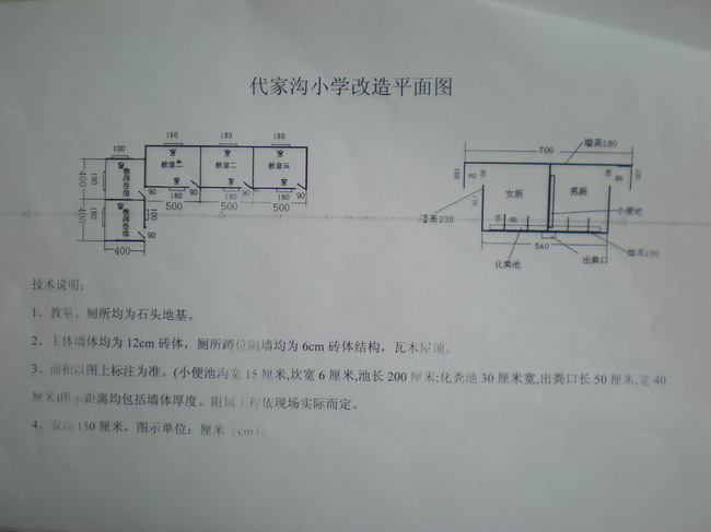 (2)教师宿舍办公室:2间       规格:4米×4米