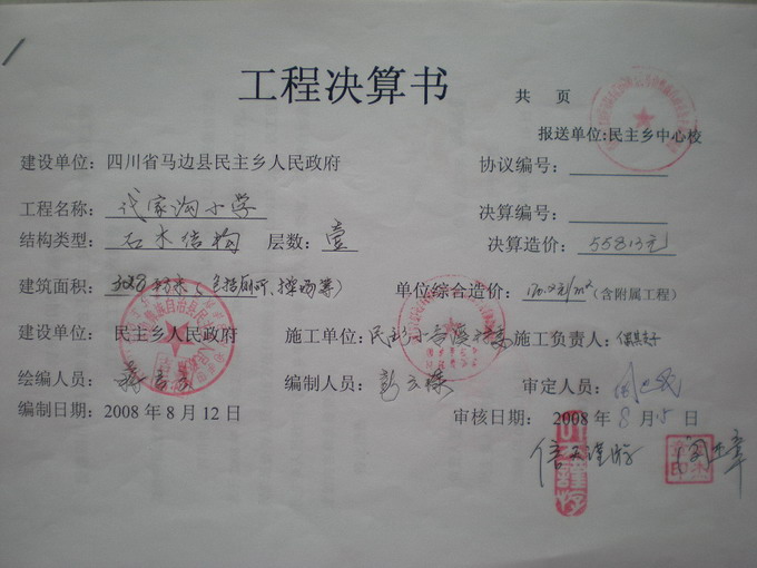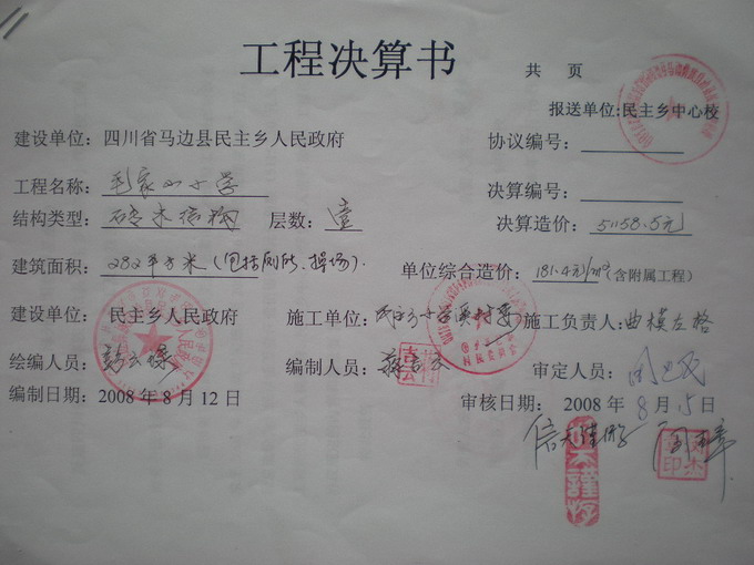 第79-81所四川省马边县民主乡三所村小学修建总结