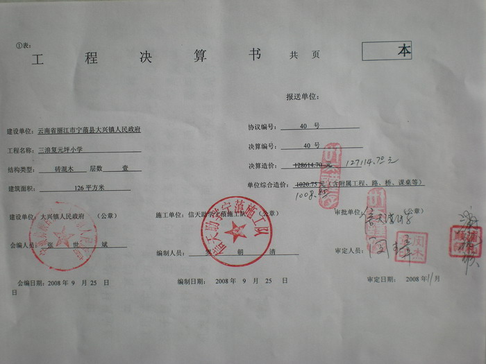 二、《资助建校协议书》及附件《图纸》和《工程预算单 》