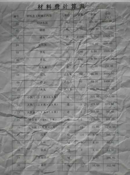 3、原来砖头运费是0.1元/块,现在为0.2元/块。钢筋、筒瓦等在08年春节后又大幅上涨。
