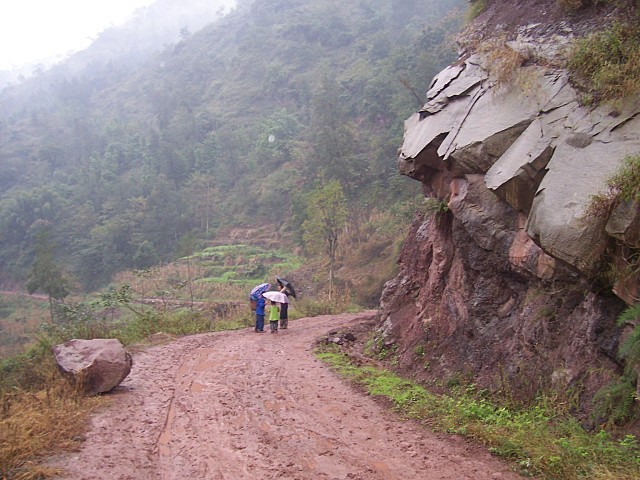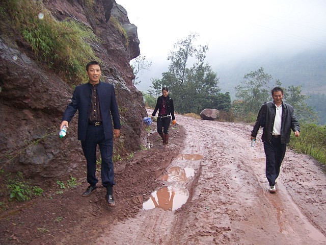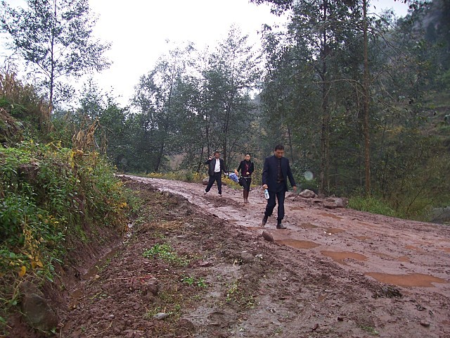 离开大公路沿通村公路进山,大约6.2公里,这里最近几乎天天下雨,道路泥泞不堪……