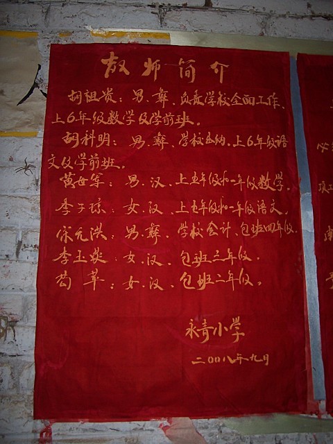 2008-10-17,应劳动乡中心校校长邀请,周老师和刘永奇等志愿者考察了深山中的永青小学