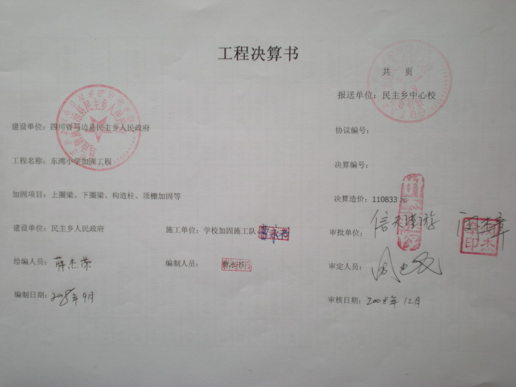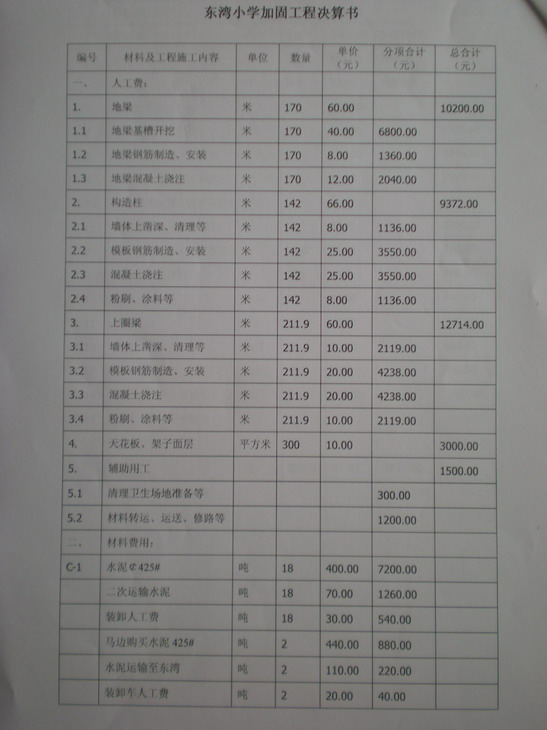 马边县民主乡东湾小学加固工程预算(娜娜猫捐助)