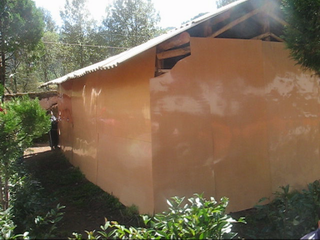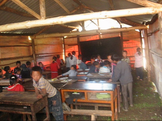 木耳坪完小现有六个年级12个班,在校学生480多人,所用教室因使用年限长达20多年,再加上屡次地震破坏,现在已经变成A级危房,不能供学生上课使用。学生都在校院里搭简易棚上课将进一年,夏天漏雨,冬天严寒,很是艰苦。