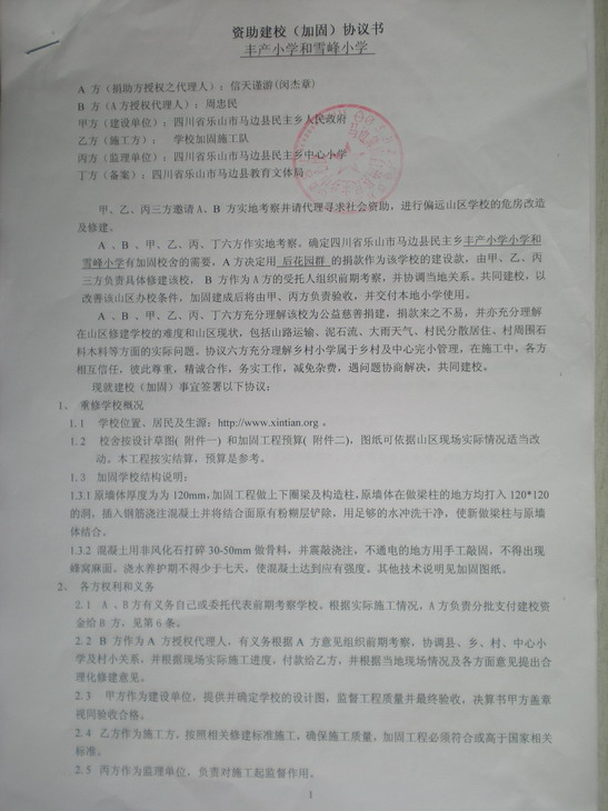 三、《资助建校协议书》及附件《图纸》和《工程预算单 》