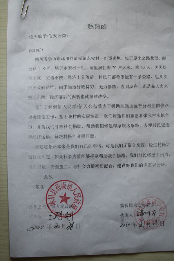谭家坝公路邀请函