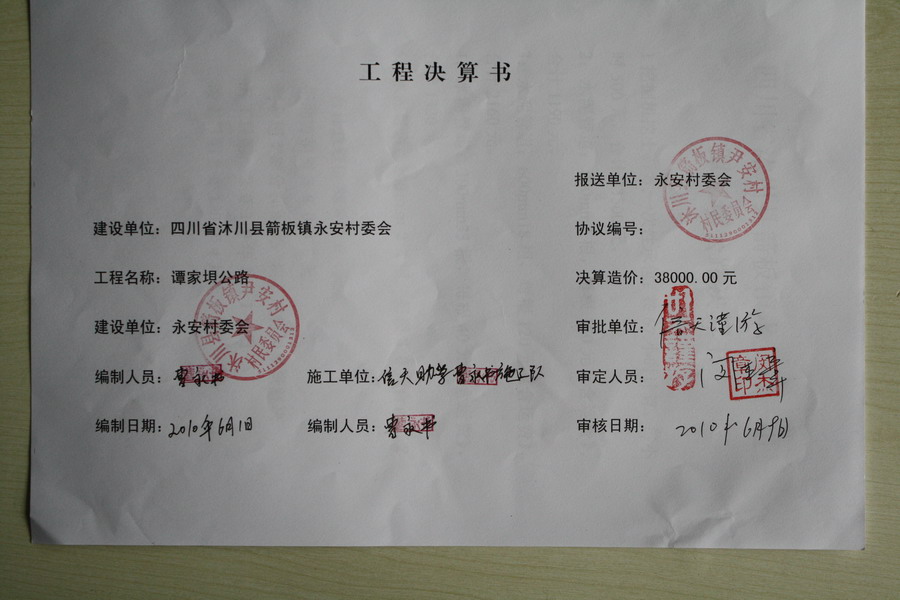 淘宝店出售项目金额汇总—第8条:四川沐川县永安村一组谭家坝公路2期(2010.8.15-2010.9.18)