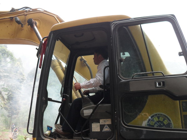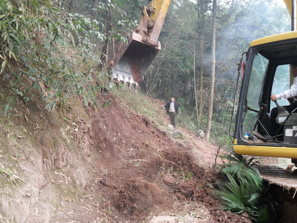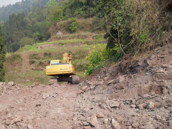 开工啦,挖掘机修路。