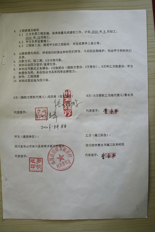 捐款人为程先生,捐款43000元,计划2010年8月17日开工,即农历七月初八。
