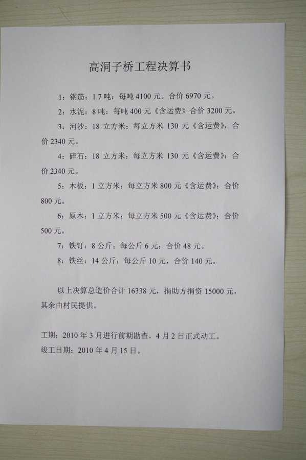 高洞子、水井湾修桥预算: