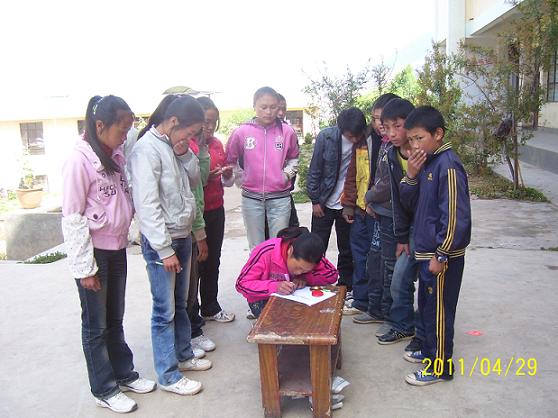 5、我们和当地老师达成如下共识:如果捐助人碰到学生提到需要东西,比如要眼镜、随身听、字典、书籍或有其他方面的情况。可以告诉学生先把他们的困难告诉老师,由老师落实具体后再转告给我们。