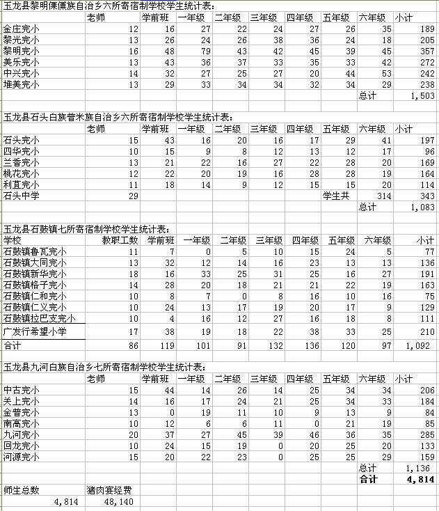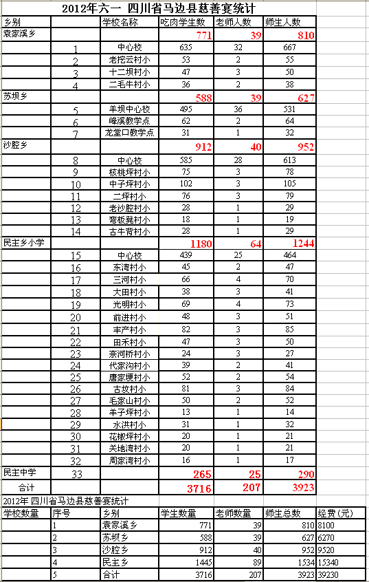 浦老师处六一猪宴实际支出: 377390+630=378020元(蒗渠中学预算人数统计错了,少算了63人,特补上),有的学校有少部分超支均由学校方补上。