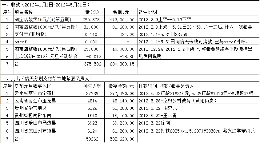 5、本次六一猪宴购猪捐款,全部用于六一猪宴。本次活动的前后组织、联络通讯、走访车费油费均由参加活动的志愿团队和个人自行承担。