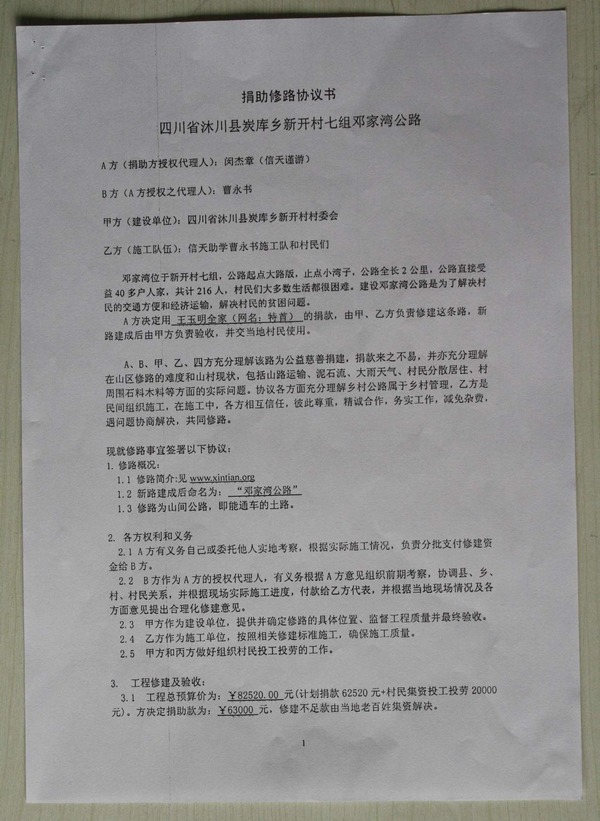邓家湾公路修建协议书