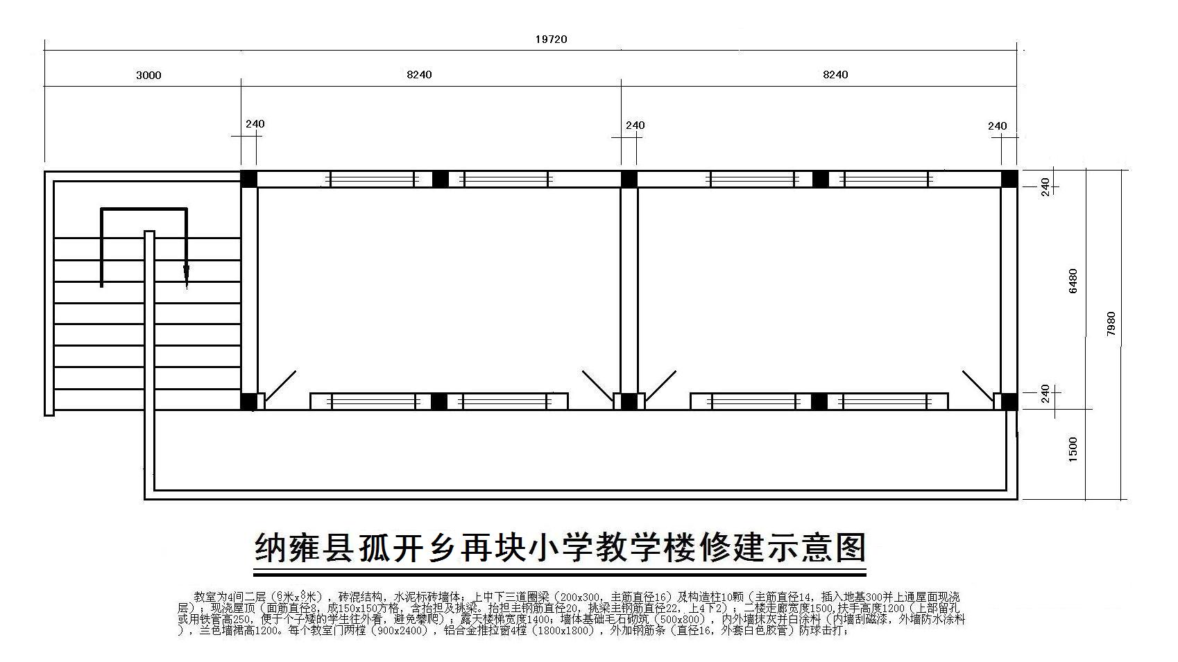 教室 2门4窗     教师用房及伙房  1门2窗  露天楼梯 宽1.5米