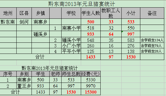 薪火助学-宋海兵处元旦猪宴实际支出:85480元。宋海兵处结余:550元,将转入下次猪肉宴。