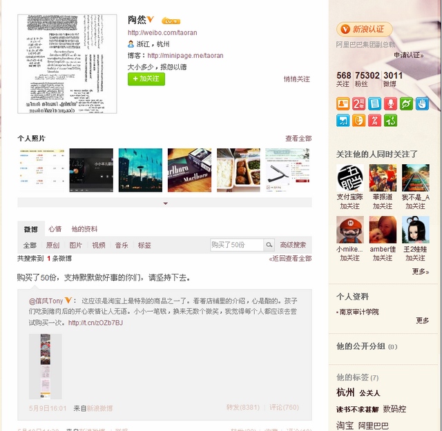 下图:阿里巴巴集团副总裁陶然先生购买猪肉后发微博: