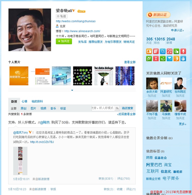 下图:阿里巴巴集团副总裁梁春晓先生发微博支持猪肉: